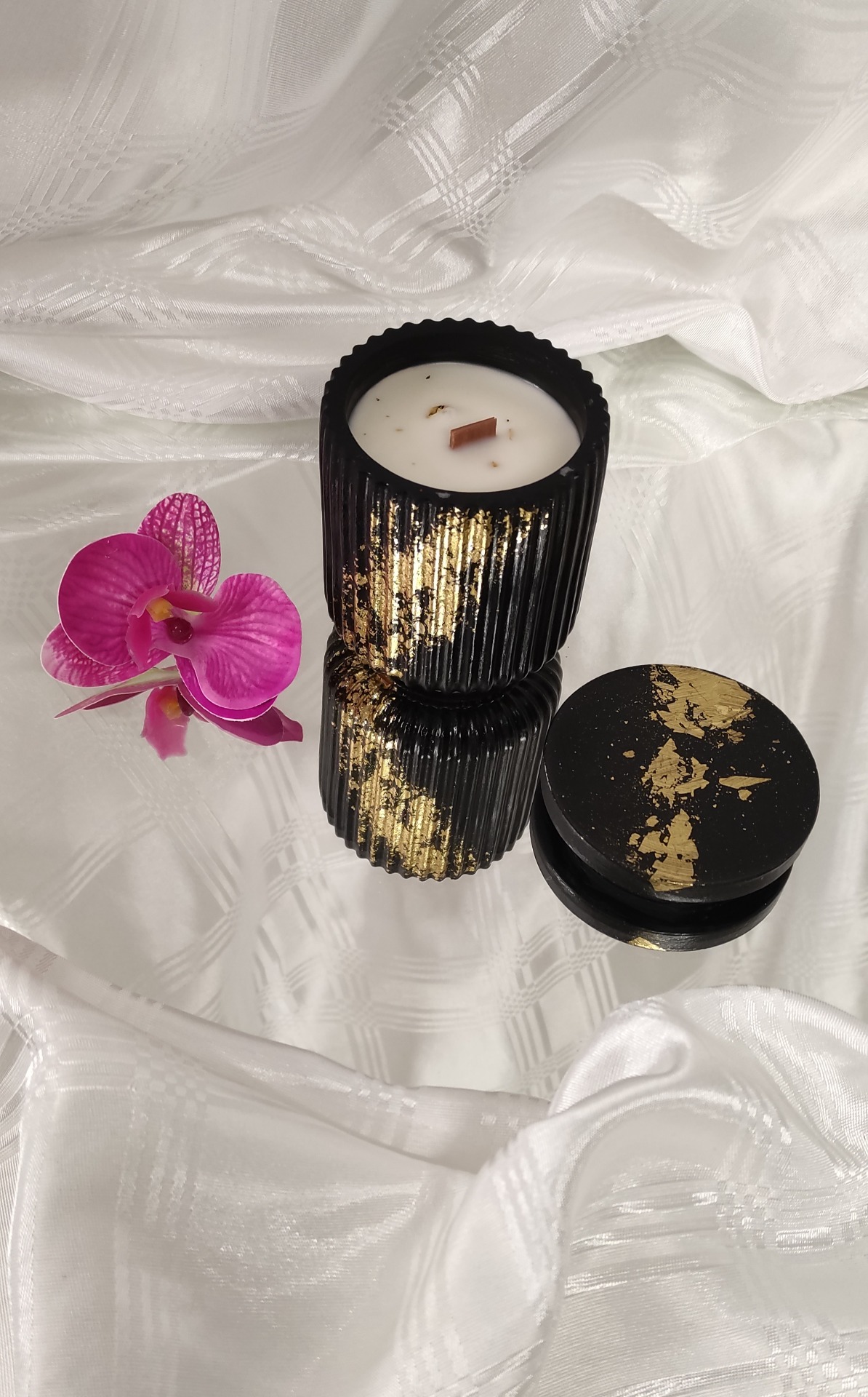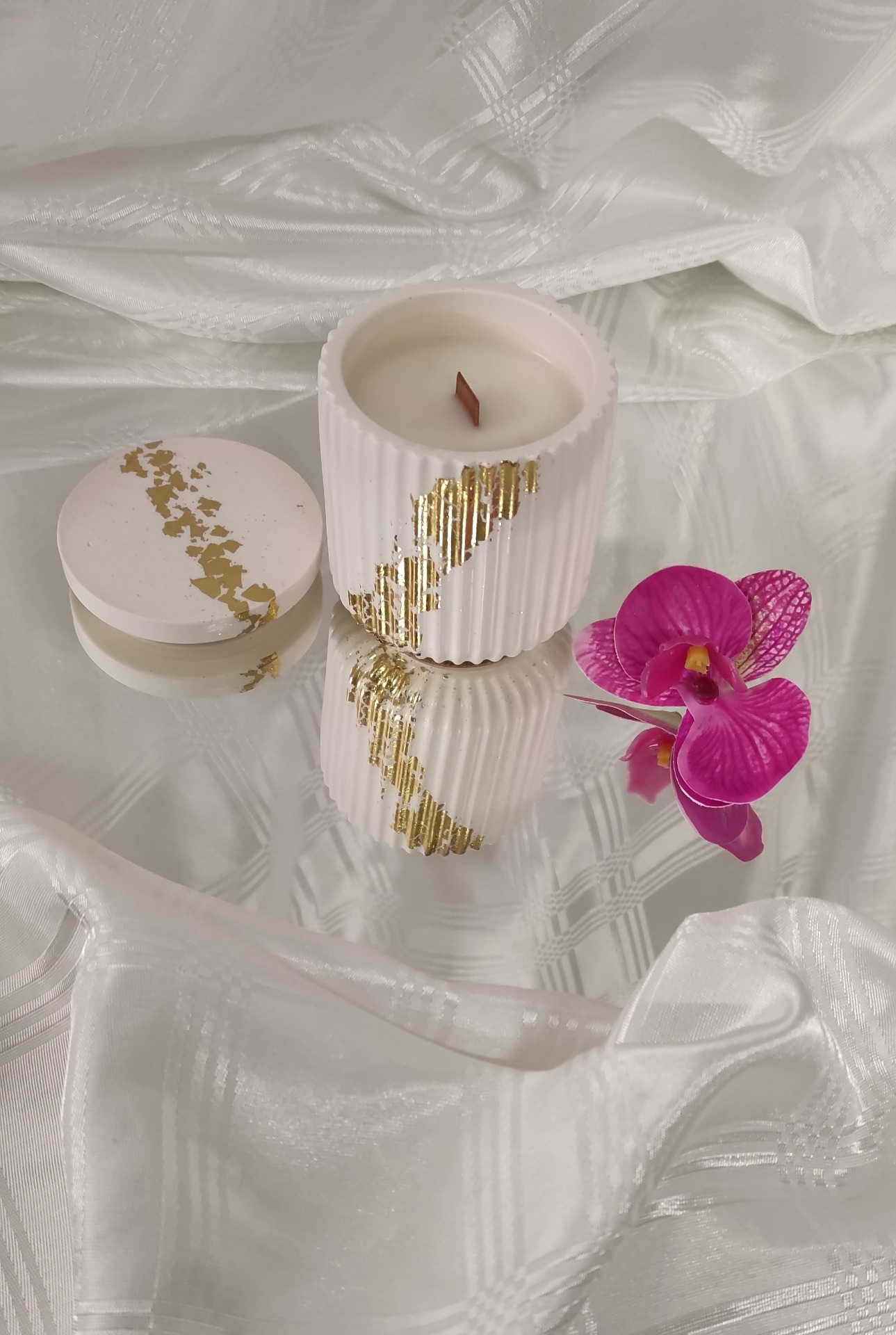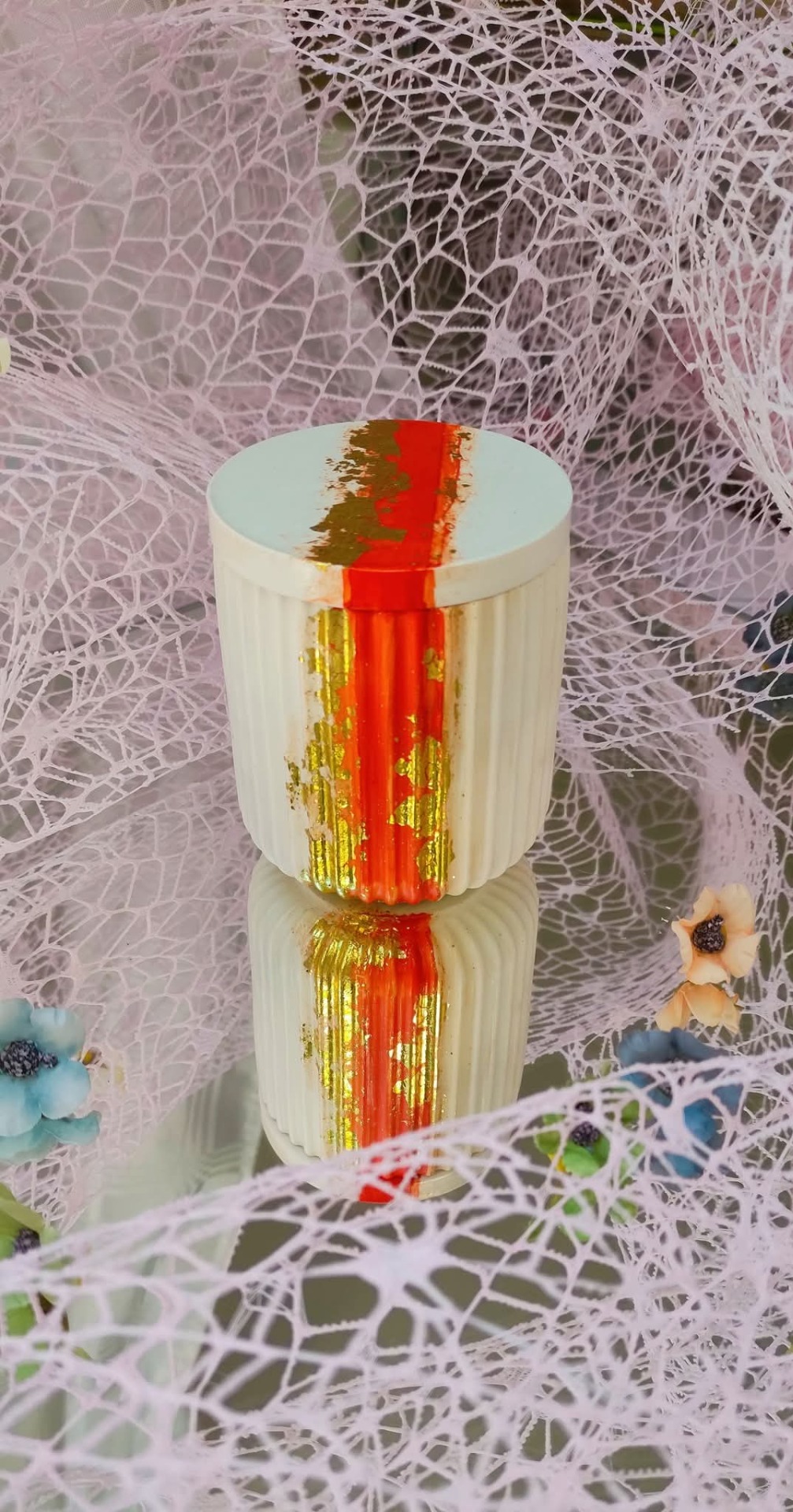 Nádobky ze směsi Jesmonite jsou nehořlavé a ekologické. Jsou vhodné i dalšímu využití. Sojový vosk KeraSoy je přírodní a eco friendly. Vůně, které používáme jsou s certifikací IFRA.
